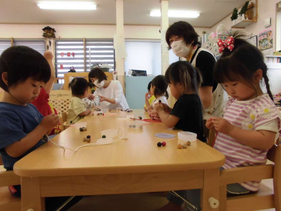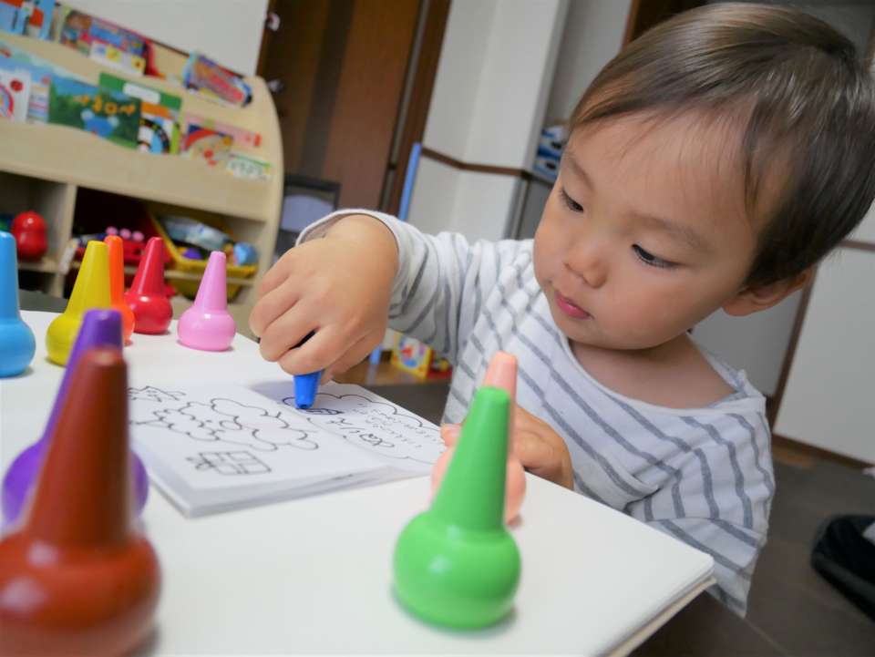 3歳位までは右脳が、それ以降話せるようになると左脳の方が良く働くという研究結果があります。触覚が敏感になる2.3歳の時期にスキンシップは勿論、手先を使った課題に取り組み、良い刺激を与える事により、脳が活性化され豊かな感情表現、積極性、自分で考え行動する力が育ちます。