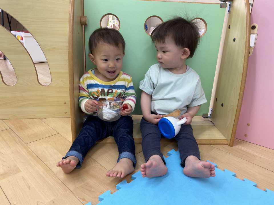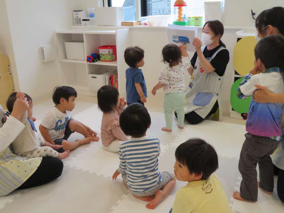 先生と一緒に絵本を見たり、玩具で遊んだり。