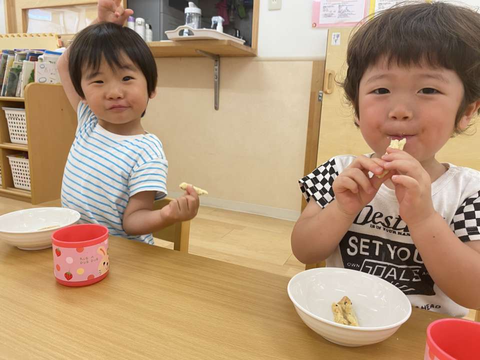 お昼寝から目を覚ましたらお楽しみのおやつの時間。