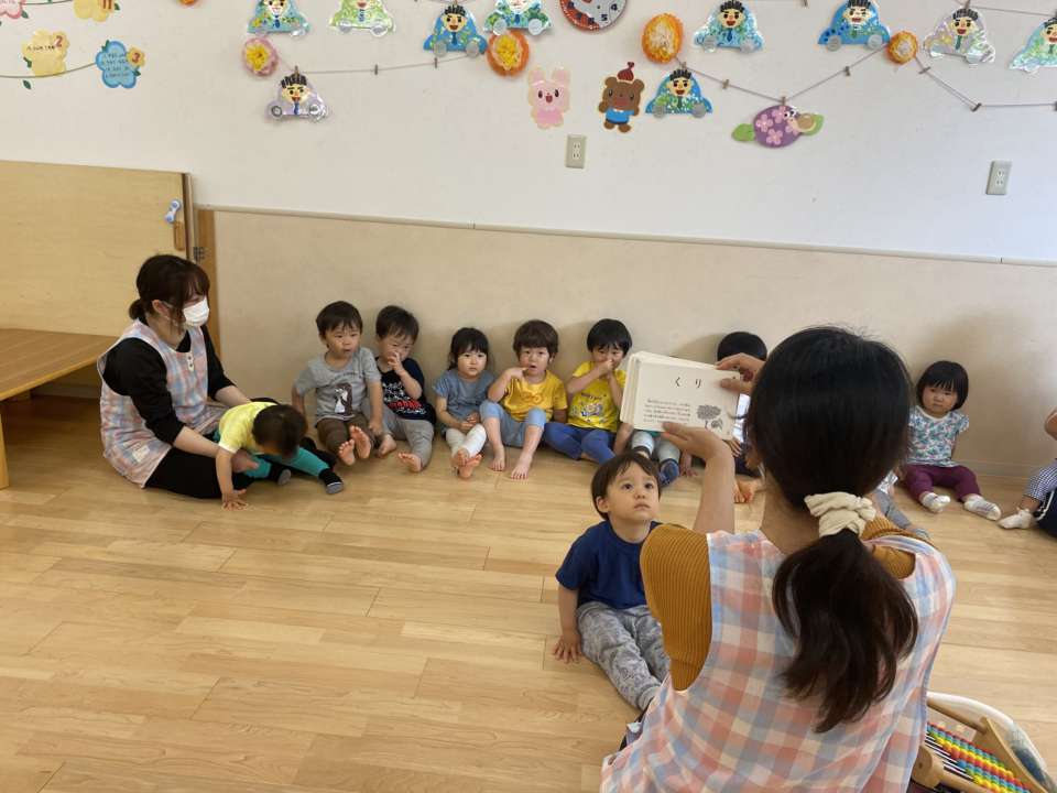 お帰りの歌を歌い、先生に好きな絵本を読んでもらいます。