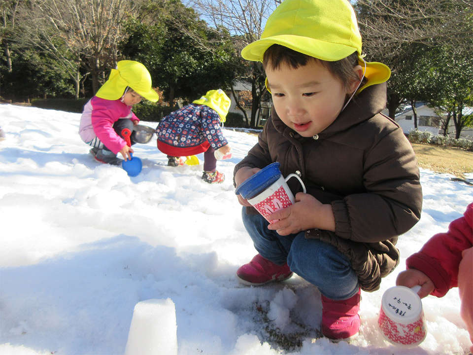 やさしい先生やお友達と過ごす一日。気持ちの良い空の下で外あそびをして栄養士さんが作ってくれるおいしい食事をみんなで仲良く食べて、お腹いっぱいになってベッドで絵本を読みながらお昼寝タイム。毎日がほんわかと過ぎていきます。