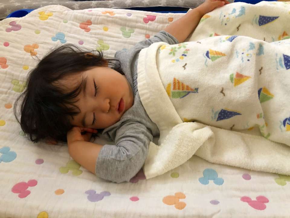 元気に遊んでお昼ご飯もたくさん食べたから、みんな幸せそうにスヤスヤお昼寝・・・