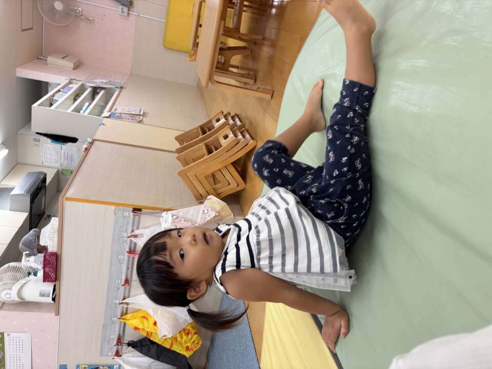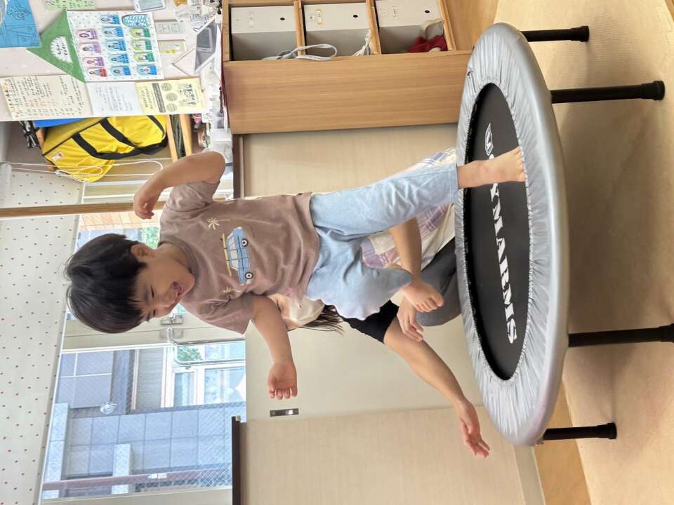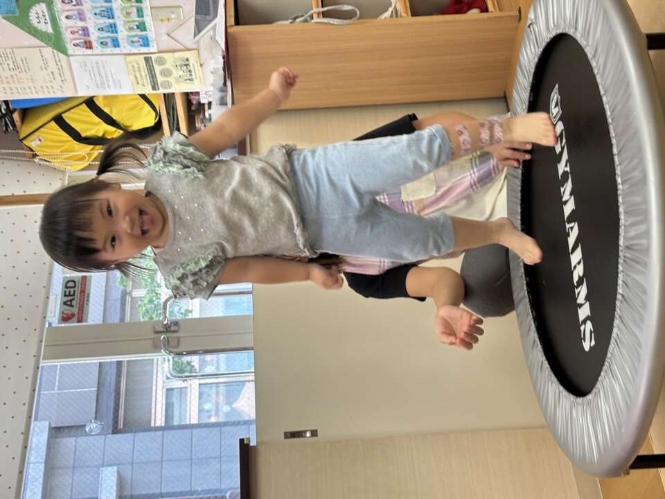 2歳児クラスは、トランポリンとマット遊び♪
