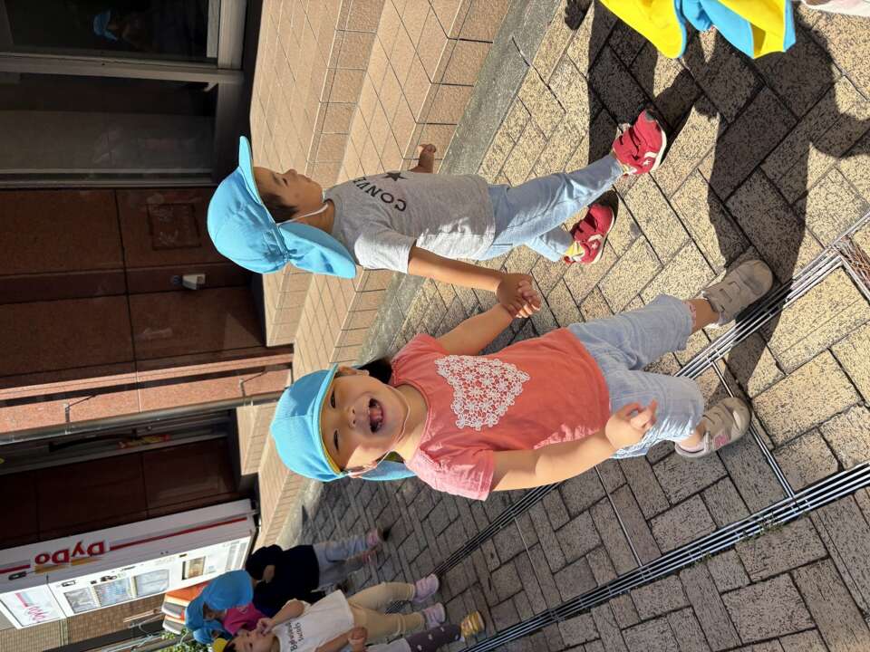 すいか組のお友だち同士で手をつないで歩いて散歩に行くこともできています。