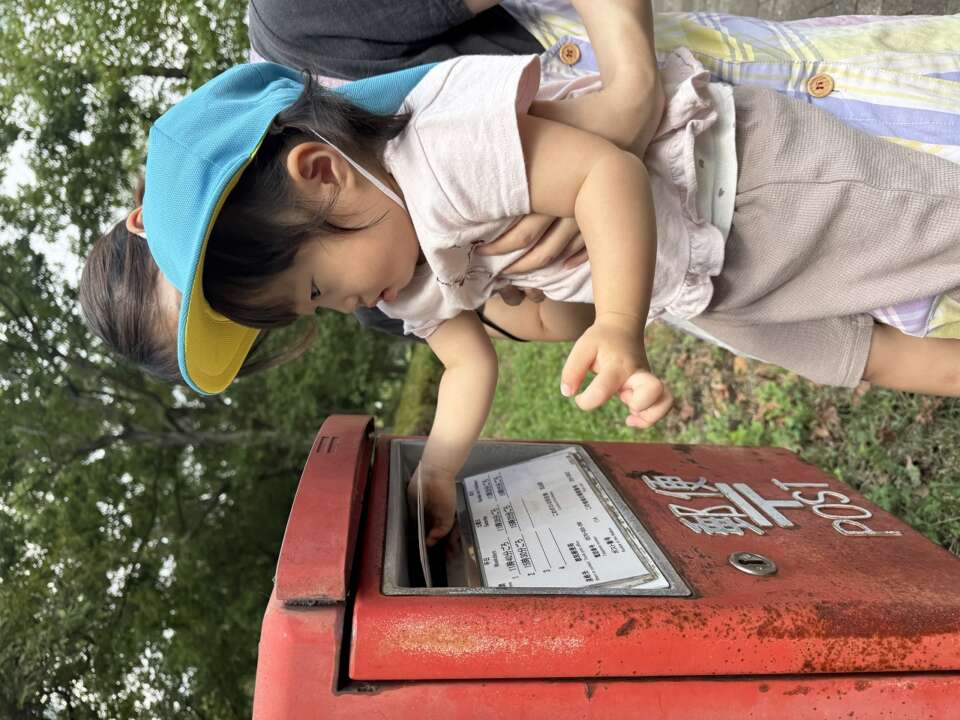 敬老の日のために制作したハガキをポストに投函しに行きました!