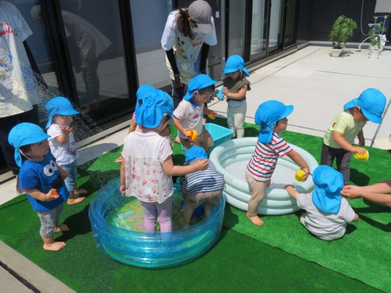 梅雨が明けてやっと水あそびの時期になりました☀ 水あそびを心待ちにしていたアイの子どもたちは、テラスに出るとためらうことなく水をバシャバシャ❕顔に水がかかっても気にすることなく、カップで水をすくったり水鉄砲で水をかけたり […]