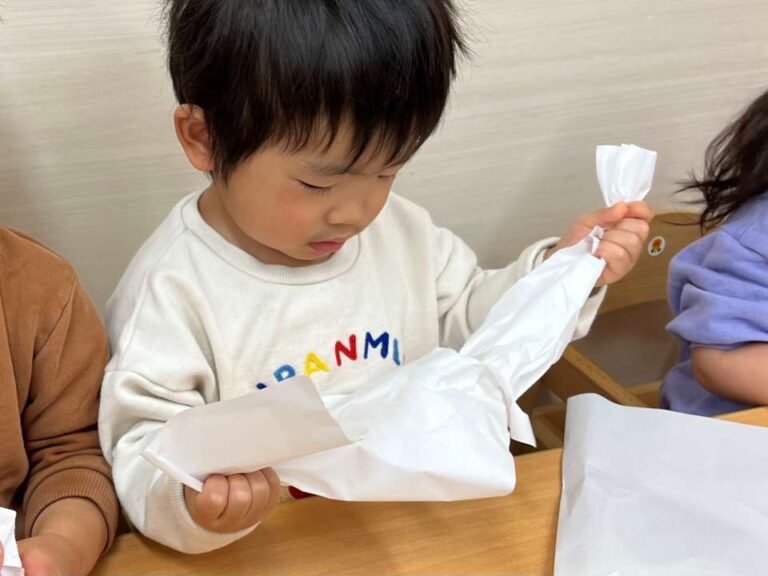 この日はいちご組さんと「ラップおにぎり作成」をしました🍙 自分で食べるおにぎりを作ります。 「どうやって作るんだろう」😳 ワクワクした表情で先生のお話を聞いていました。 みんなも作ってみます。 ほんのり温かいごはんをぎゅ […]