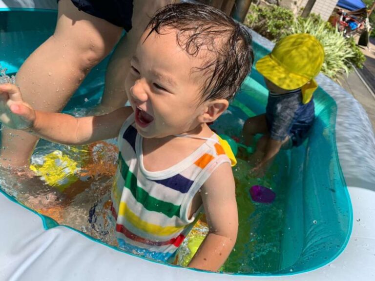タライで水遊びも楽しかったけれどダイナミックに遊べるプールはもっと楽しい~♪ もちろんタライも出しているのでゆっくりじっくり遊びたい子はプールの前のタライで水遊びを楽しむ子もいます! ひよこ組(0歳児)のお友達もタライに […]