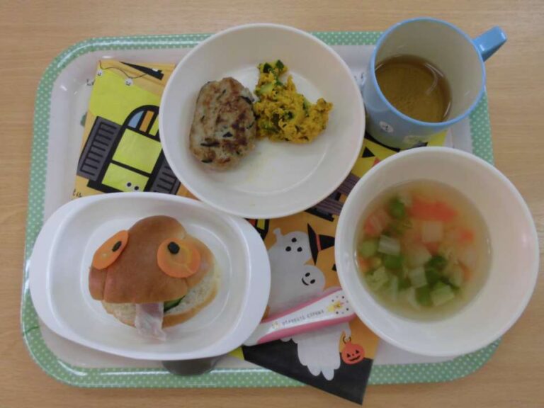 10月のお楽しみ給食は、ハロウィンバージョン!なんと・・・舌をベロ~ンと出していました。 『わぁ!こっち見てるな・・・・・』