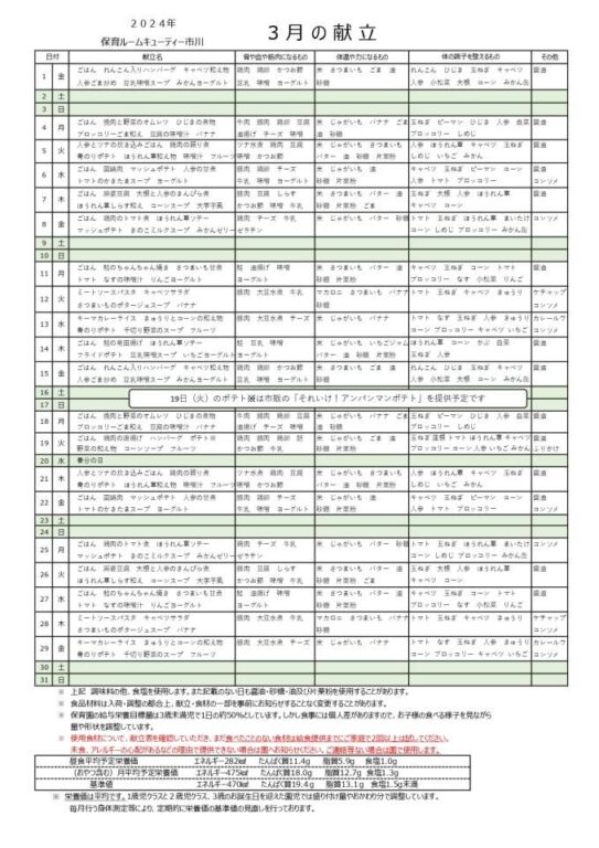 今回はキューティーの献立表をご紹介します♪ 2024年3月の給食とおやつの献立表(市川園)です⇩ 【給食】 【おやつ】 実際に配膳された給食はコチラ⇩ 3月12日ミートソースパスタ🍝 3月21日人参とツナの炊き込みご飯🍚 […]