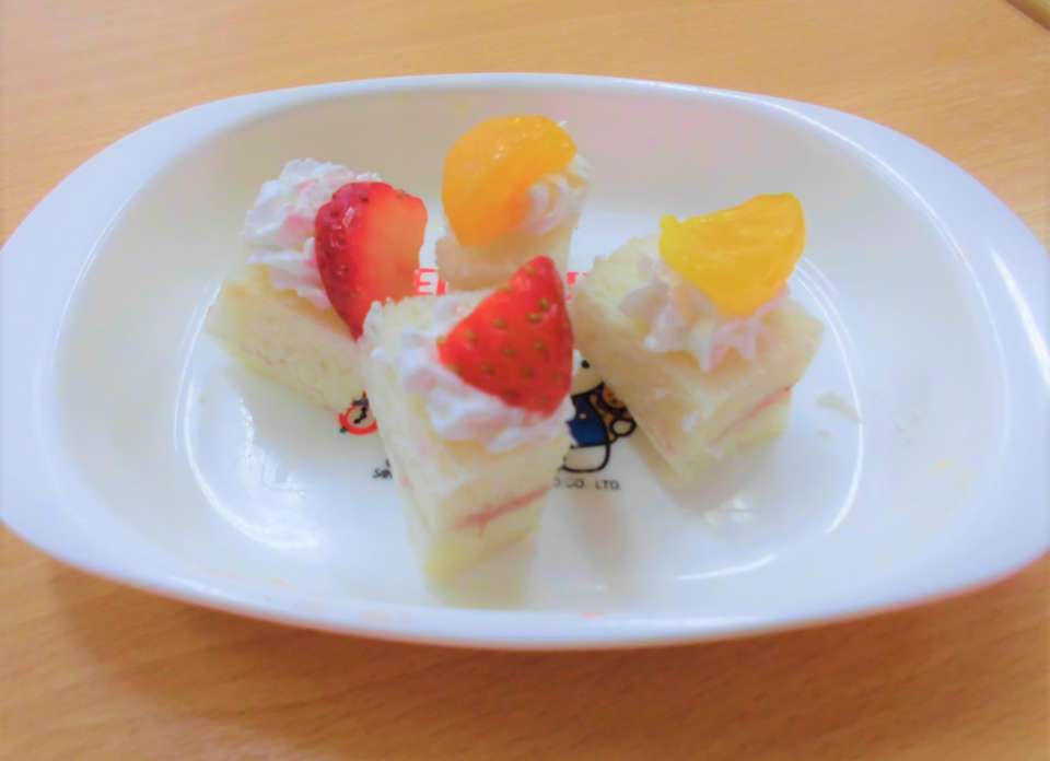ひとりひとりクリームをしぼってもらい、自分でフルーツを飾り付けました😊
