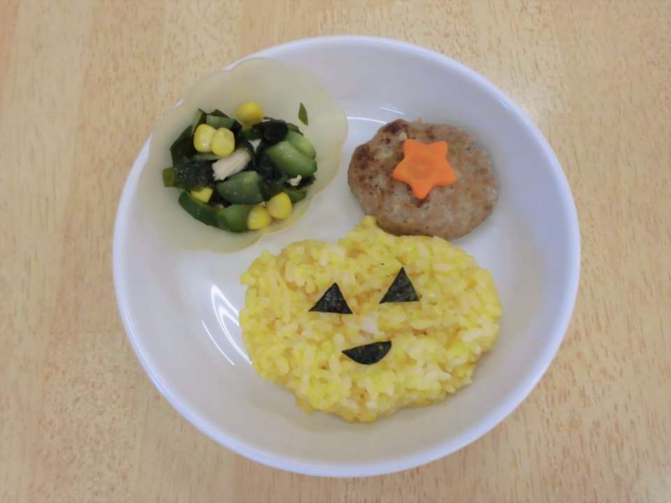 津田沼園のハロウィンの日の給食にはかぼちゃの形のご飯が登場🎃