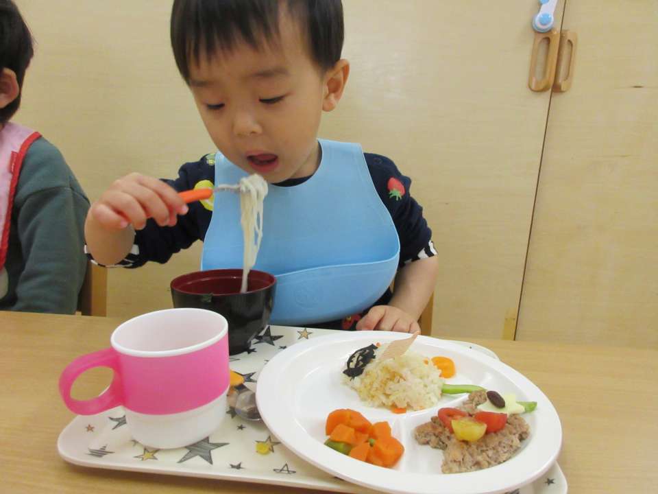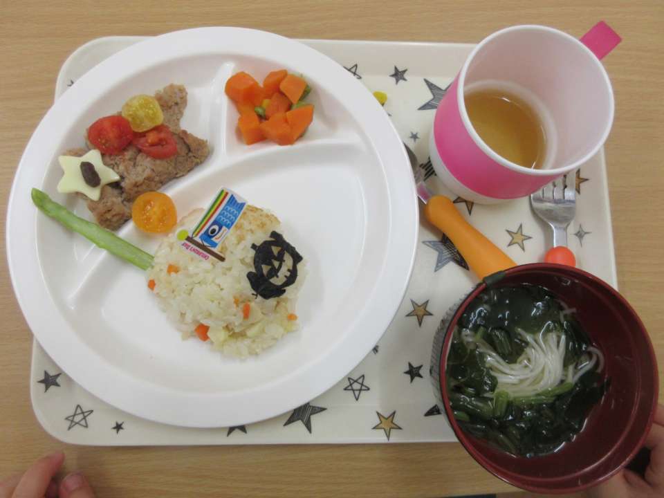 当日は連休中だったため、みんなが登園した日にこいのぼり給食をみんなで食べました😄