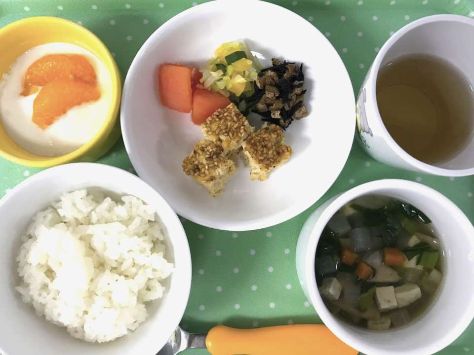 給食では、食べてもらいたい分量はありますが、苦手なものは はじめは少な目に盛り付けて「食べられた!」の経験が1回でも多く出来るようにしています。