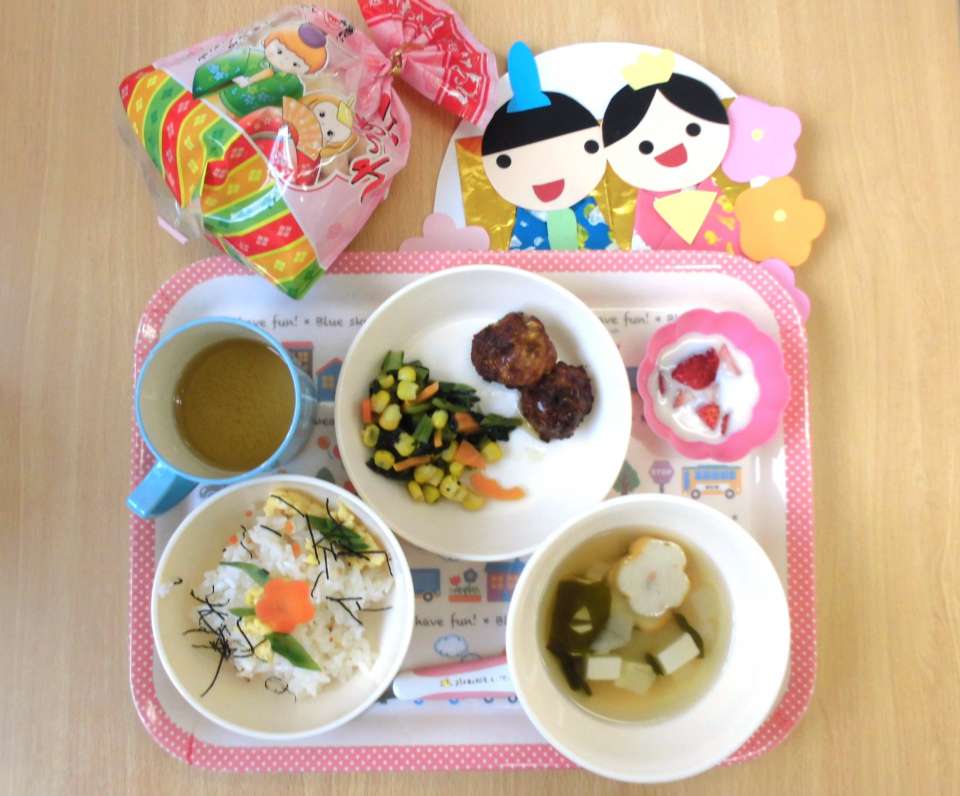 津田沼園でのひなまつり給食を紹介します。