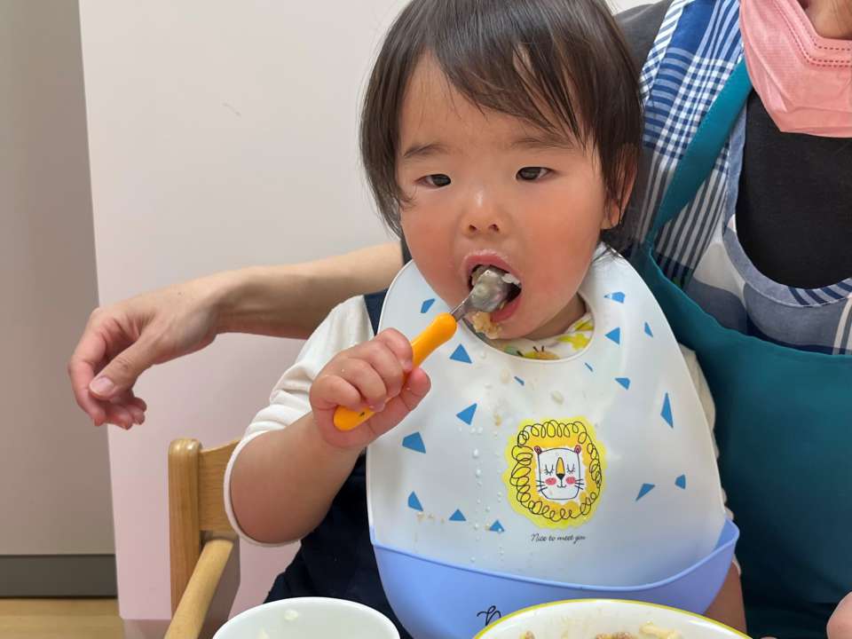 そして自分で食べる意欲も育っています。上手にスプーンを使う姿に驚かされます。