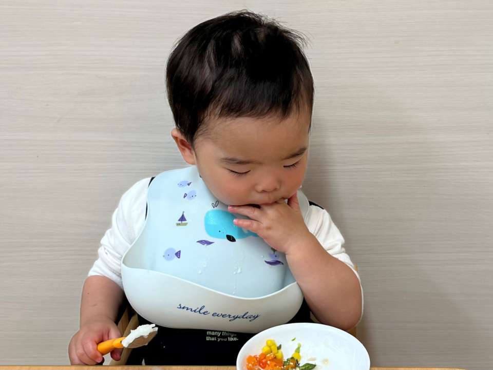 9~11ヵ月頃になると食べ物を認識して手を出すようになりはじめ、1歳~1歳半頃には積極的に手づかみをして食べる姿が見られるようになってきます。