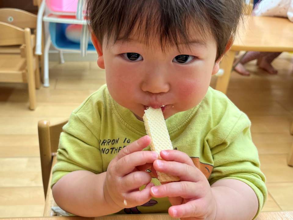 子どもたちの「自分で食べたい」気持ちをサポートしながら、積極的に「手づかみ食べ」をさせてあげたいと思っています。