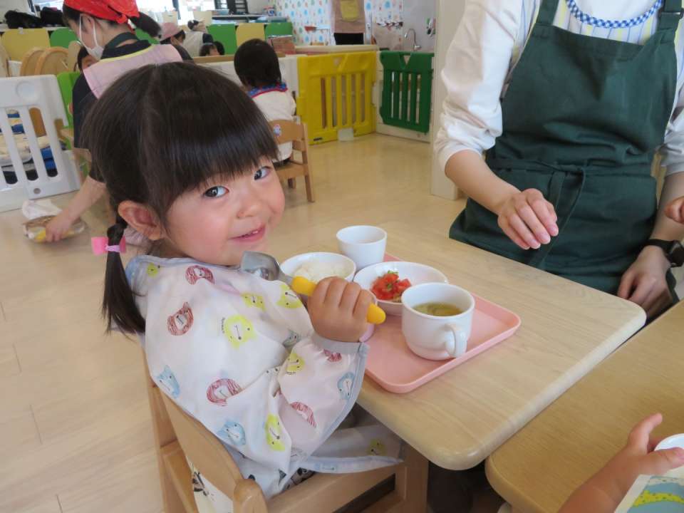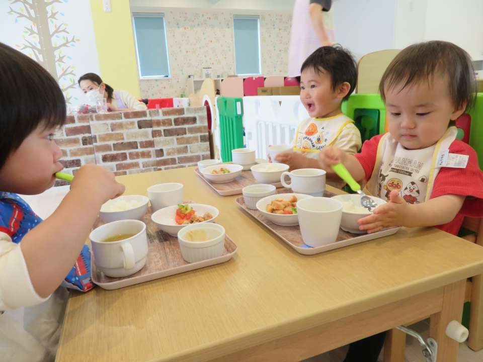 自園調理の温かい給食をみんなで楽しく食べています🌟