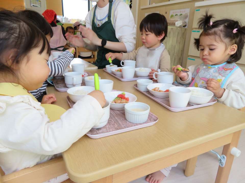 まわりのお友だちがおいしそうに食べている姿を見て