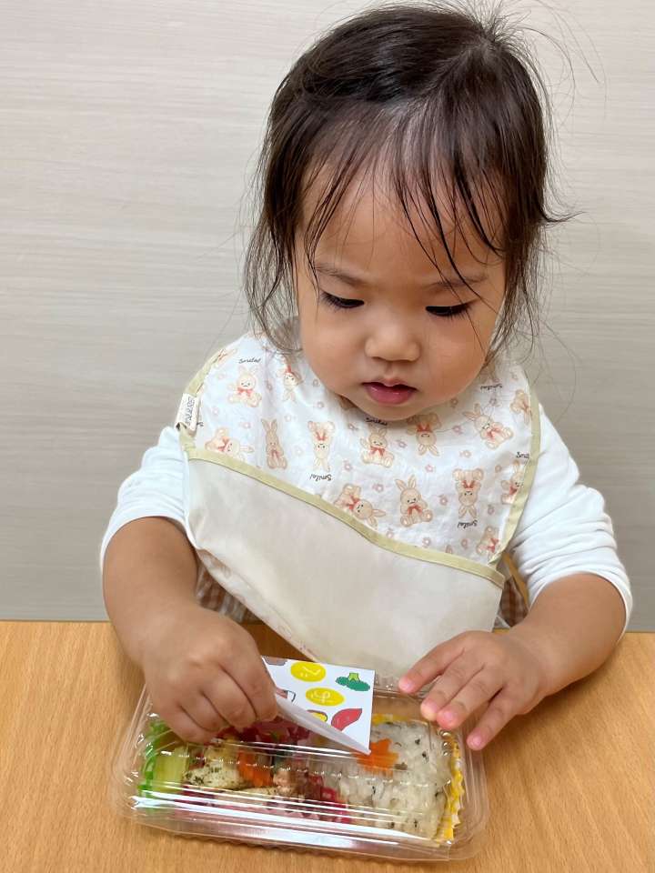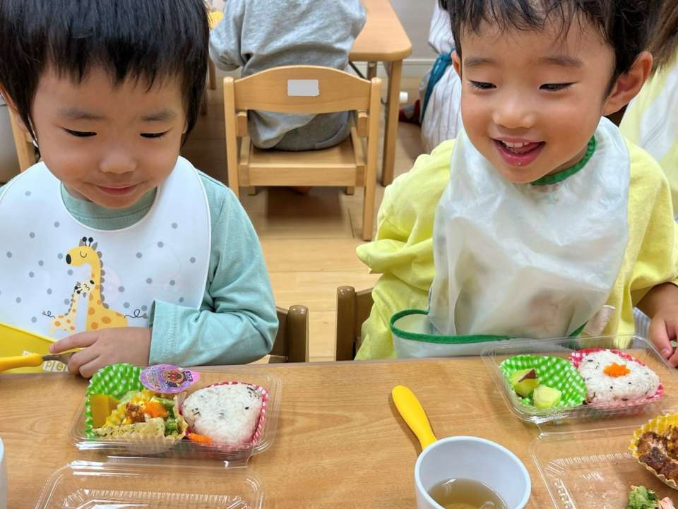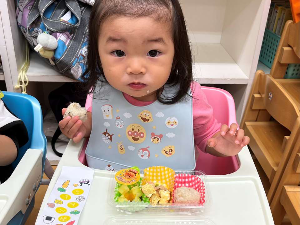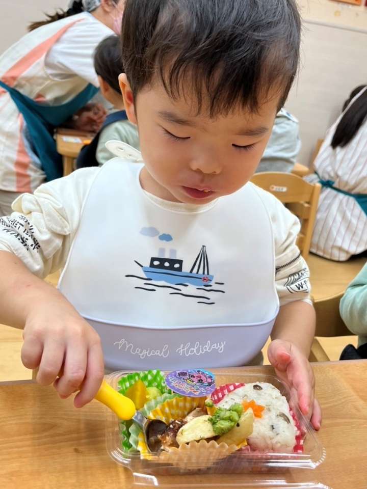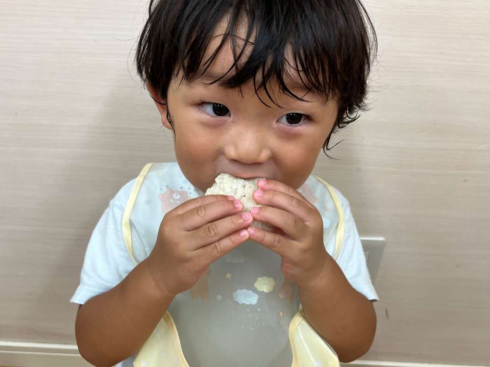 おにぎりも大きなお口でパクッ! お弁当給食美味しかったね