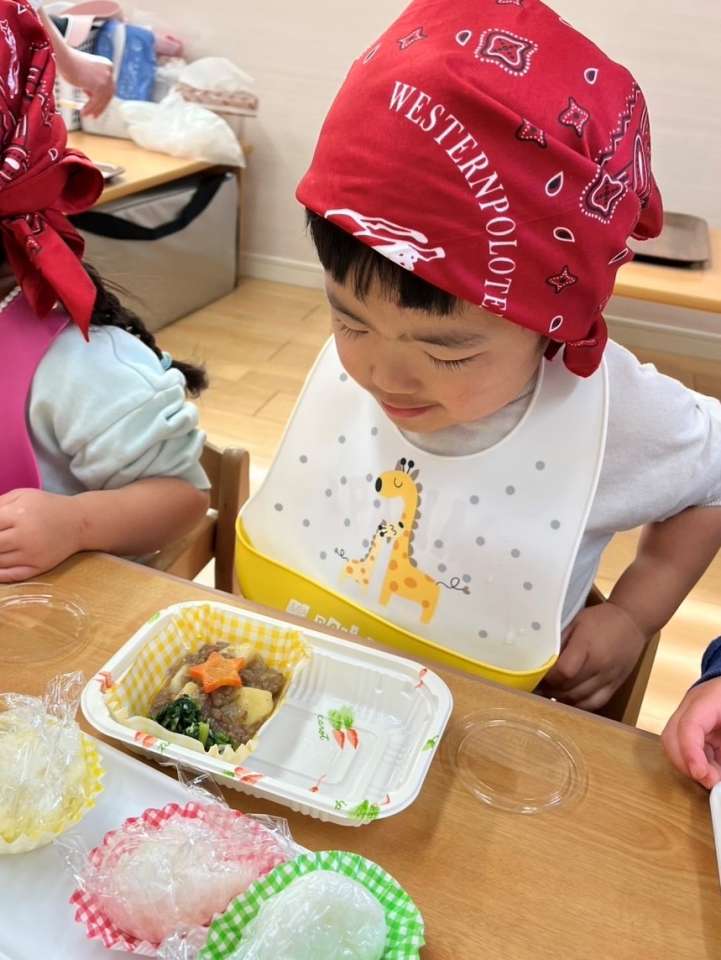 お弁当箱におにぎりを詰めて、ハートや星など好きな形の人参を飾って…