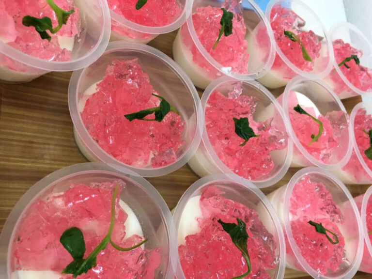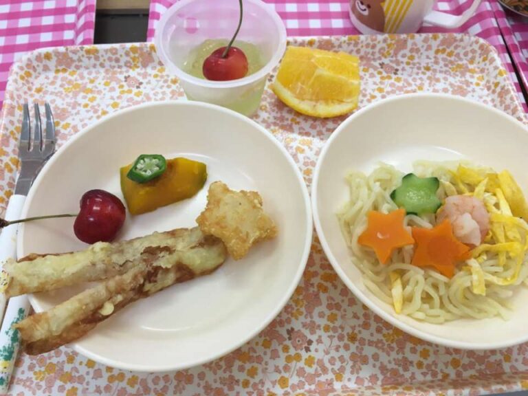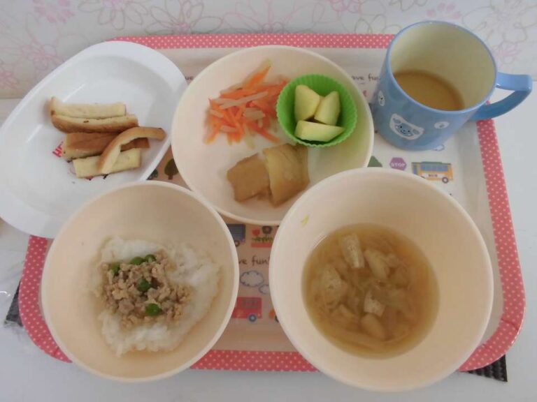 北山田園の七夕おやつ 今日は七夕。北山田園のおやつもピンクでキラキラ。おやつの時間までもうちょっとガマンだよ! 園で育てた二十日大根・・・は七夕おやつのピンクのゼリーの上の葉っぱです。