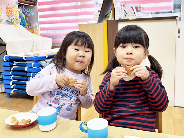 経験豊富で長年、キューティーの仲間として勤務している保育士が多く在籍しています。ネイティブの先生による英会話レッスンも行っており、好評いただいています。アットホームな雰囲気の津田沼園に是非一度見学にいらしてください。